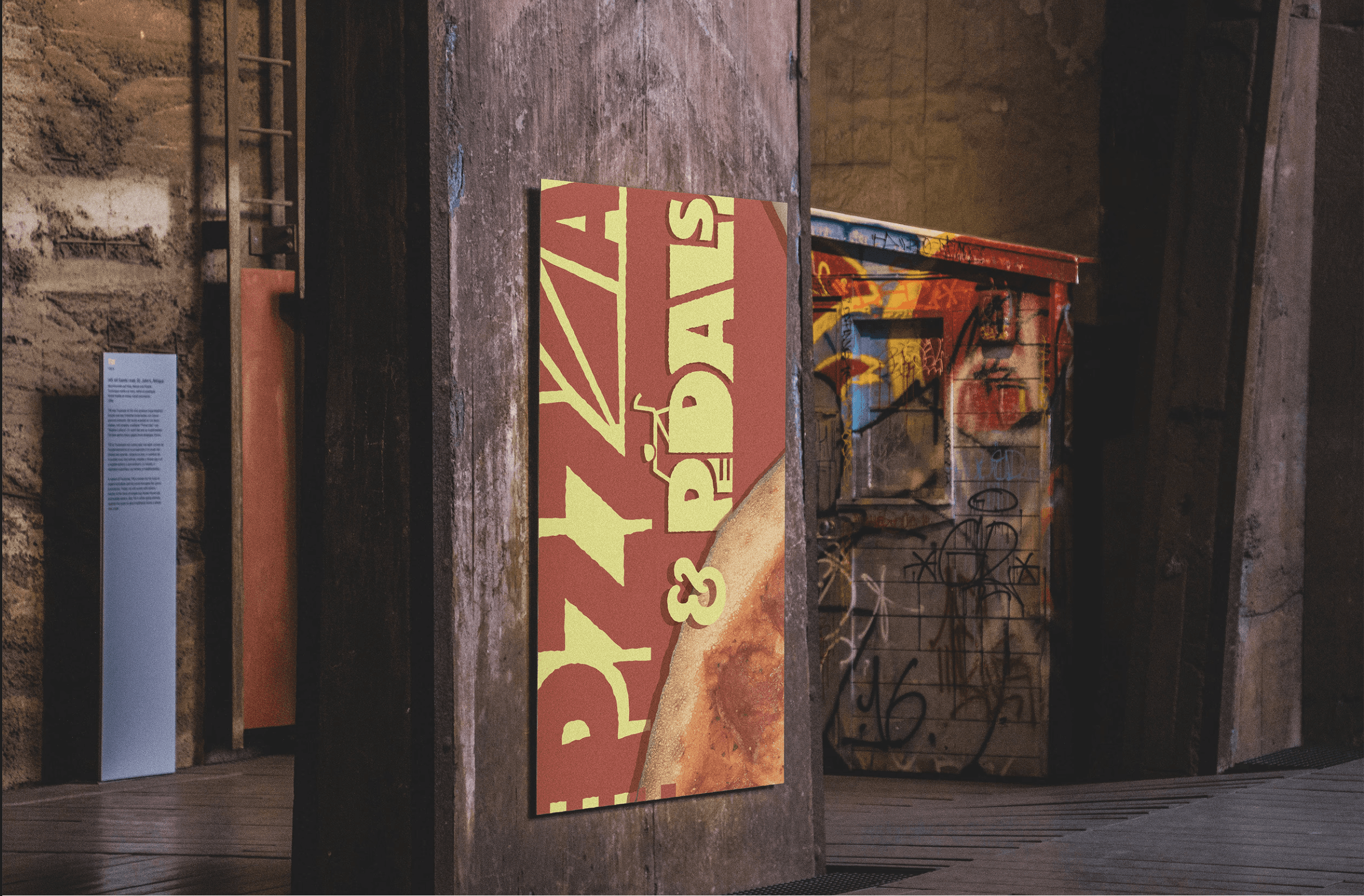 the final step to make the brand feel alive is the assets around the logotype. an identity is not just a logo, but what it does and how it lives in space. I made mockups and designed pizza boxes as well as advertisements to make the brand feel alive.