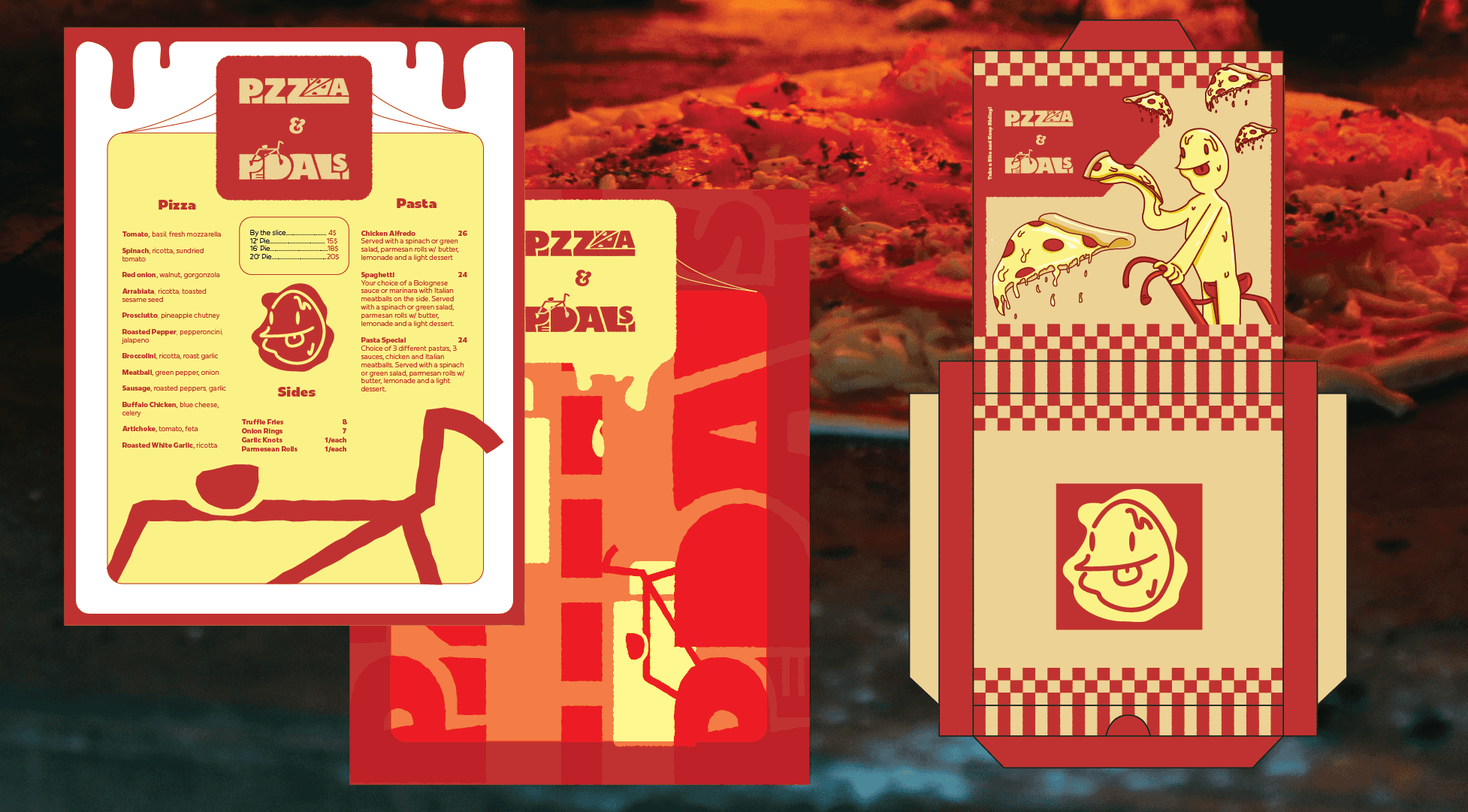 how do you combine two very different products into an identity that feels alive and unique. I needed to think about how the type, colors, and overall direction of this brand was going to feel, what emotions I wanted to evoke. I felt the need to design pizza boxes, napkins, advertisements.